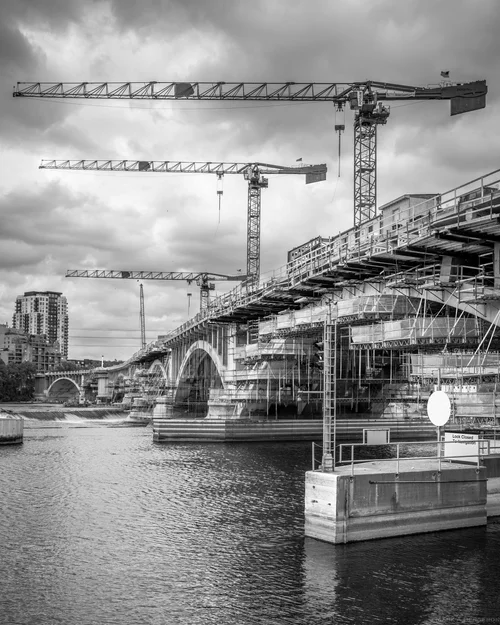 For years this was the view off of the Kenzie Bridge - the backdrop to countless wedding photo sessions (a dozen a day, no exaggeration). Only faint traces of what was to come in terms of what would be today's skyline from this vista are shown here - namely the walkway on the lower right of the frame. Today, this scene looks completely different,.., dominated by a new construction that obstructs the views of the Boeing and the absolutely iconic Willis (Sears) Towers. Kenzie Bridge was in my backyard for years, and fortunately, I was able to witness the transformation (or demise) of this splendid Chicago visual offering.